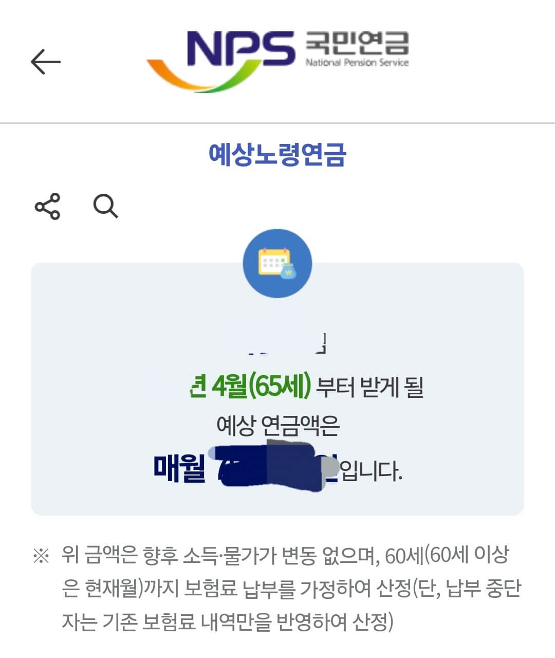 ➡️ 노령 예상연금 금액 조회