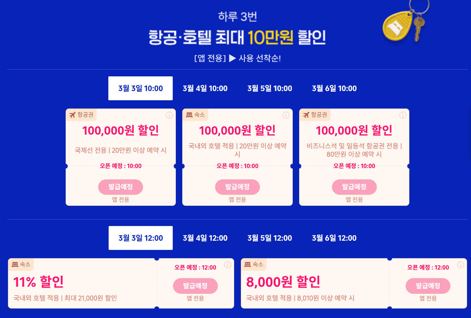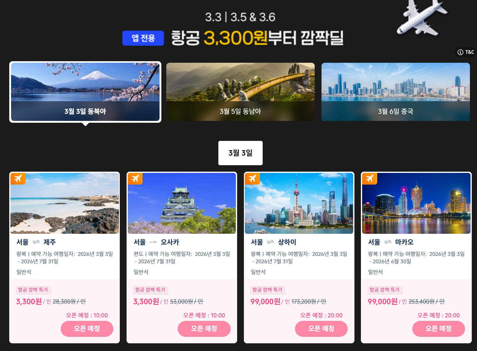 국내·국제 항공권 3,300원부터, 국내외 럭셔리 호텔 1.9만원, 매일 최대 50% 할인쿠폰까지