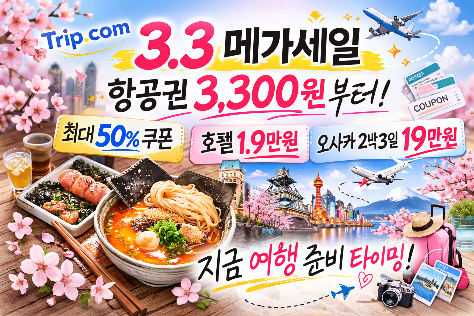 | 트립닷컴 3.3 메가세일, 항공권 예약했다면 꼭 챙길 할인 (1) | 2026.03.01 |