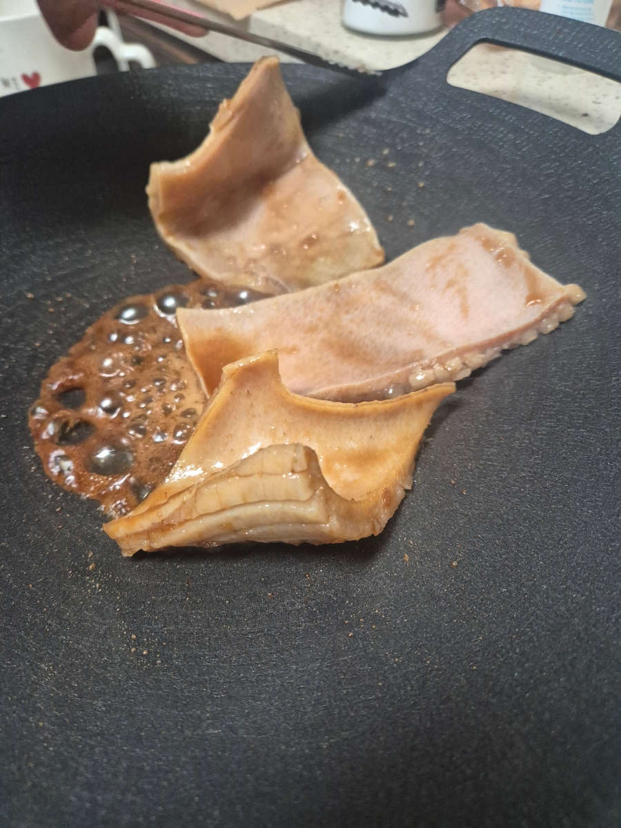 집에서 간편하게 먹는 냉동 양념 돼지껍데기