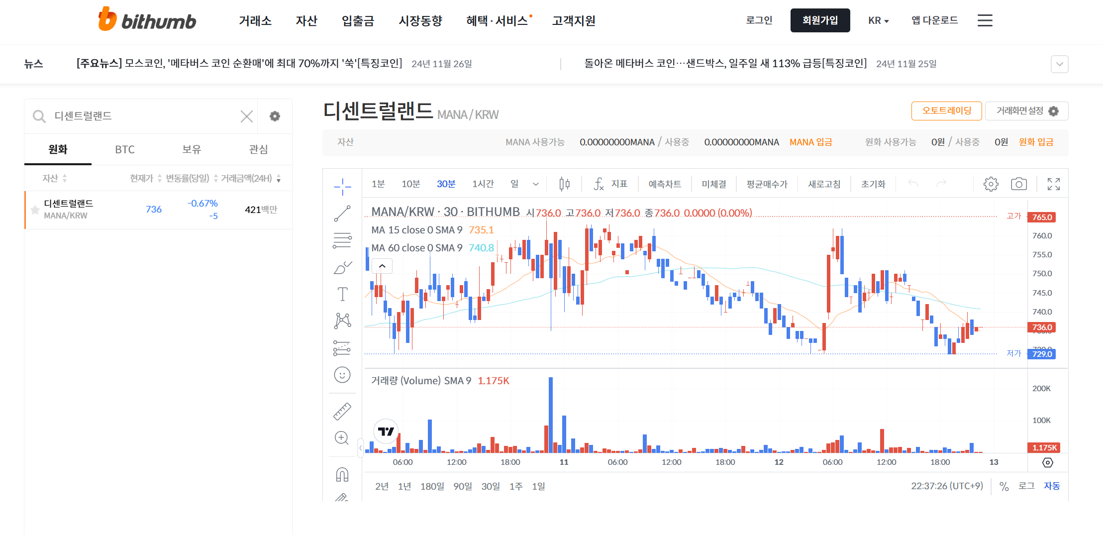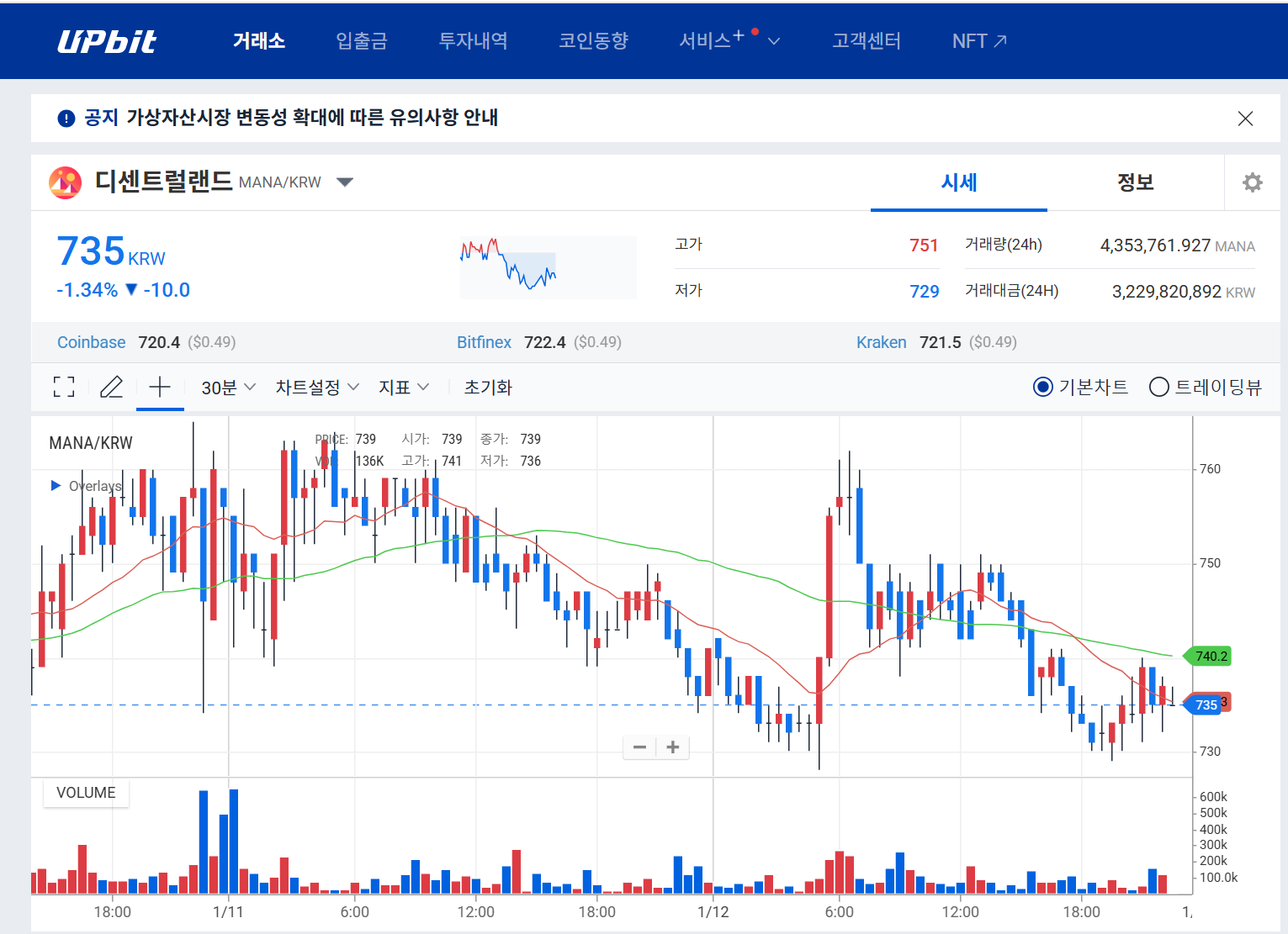 MANA 코인의 현재 시세 분석